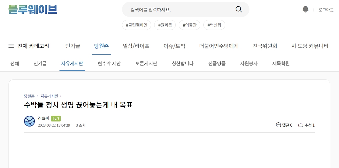 블루웨이브에 오신 당원 여러분을 환영합니다.