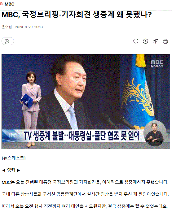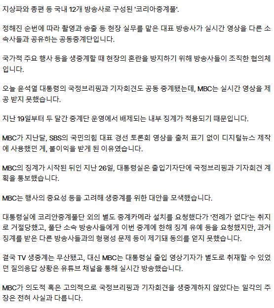 MBC, 국정브리핑·기자회견 생중계 왜 못했나?ㅡ 갑질하는 풀단