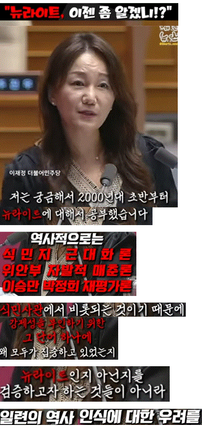 옛날에는 뉴라이트라는 것이 부끄러워서 숨기고 했는데 룬석열 정부에서는 고위직 장관을 뉴라이트가 다 장악하고 나니 자랑거리가 된 듯이 큰소리 치네요 이런 비상식적이고 비정상적인 사람들이 나라를 다 망치고 있네요 ㅉ