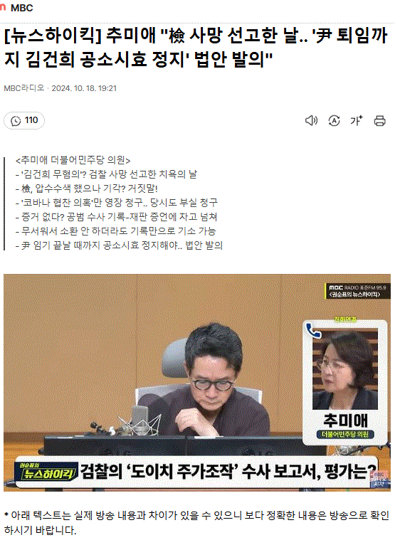 [뉴스하이킥] 추미애 "檢 사망 선고한 날.. '尹 퇴임까지 김건희 공소시효 정지' 법안 발의"