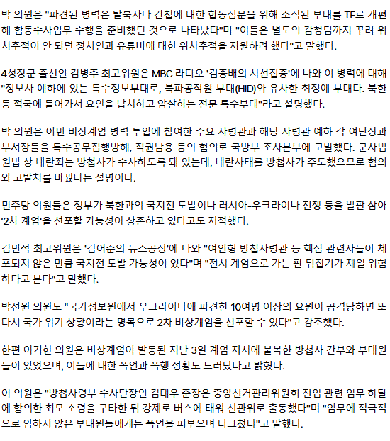 野 "내란에 특수부대도 체포조 동원 제보… 전시계엄 유도 가능성"