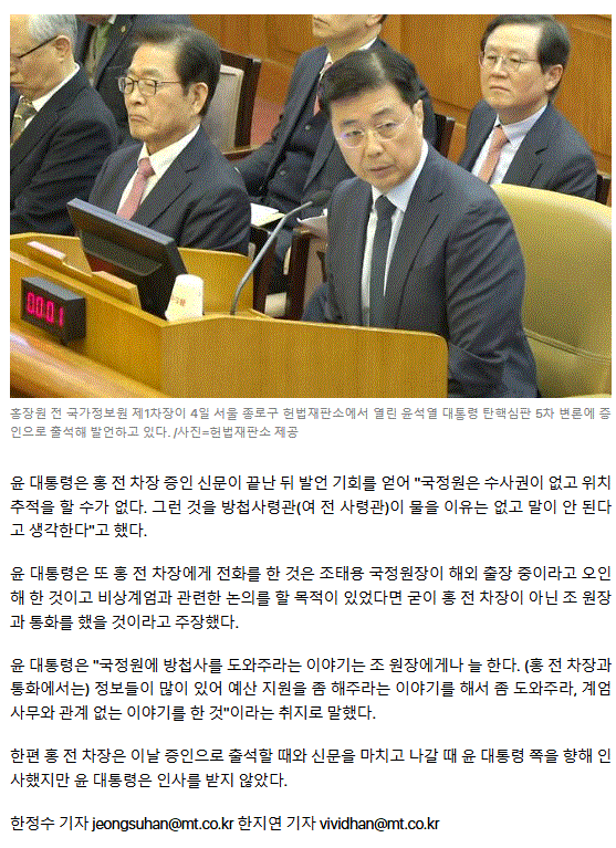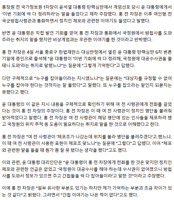 홍장원 "정치인 체포 시도 있었다"… 尹 "洪과 통화, 계엄과 무관"
