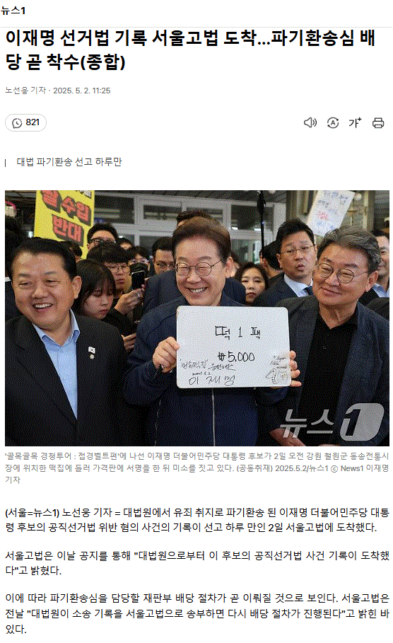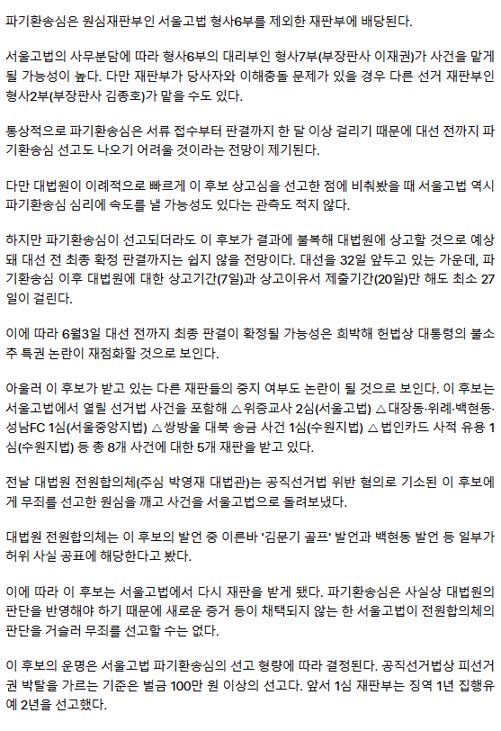 이재명 선거법 기록 서울고법 도착… 기환송심 배당 곧 착수(종합)