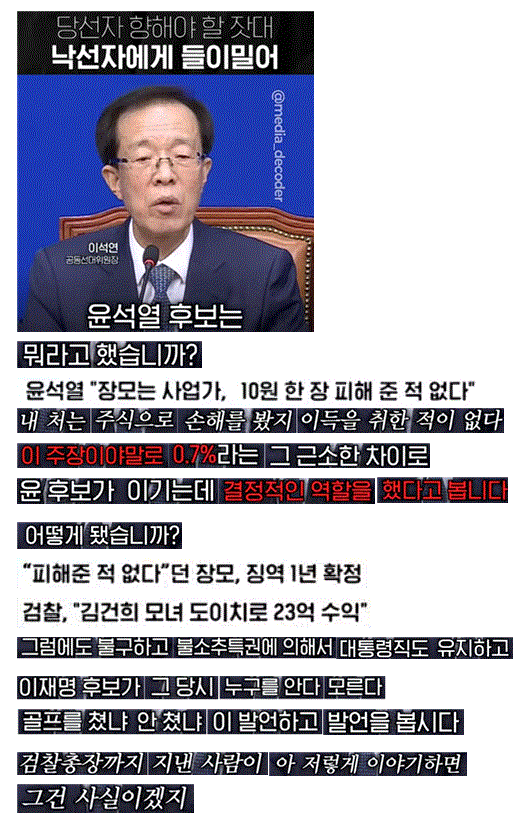 '장모 10원 한 장..', '김건희 주식 손해만..' 당선자는 놔두고 낙선자를? #이석연