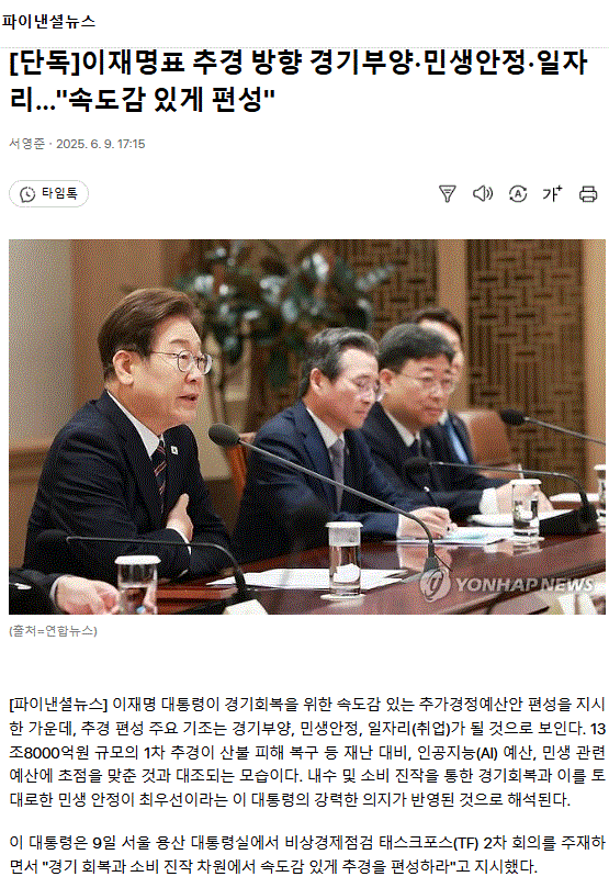 [단독] 이재명표 추경 방향 경기부양·민생안정·일자리… "속도감 있게 편성"
