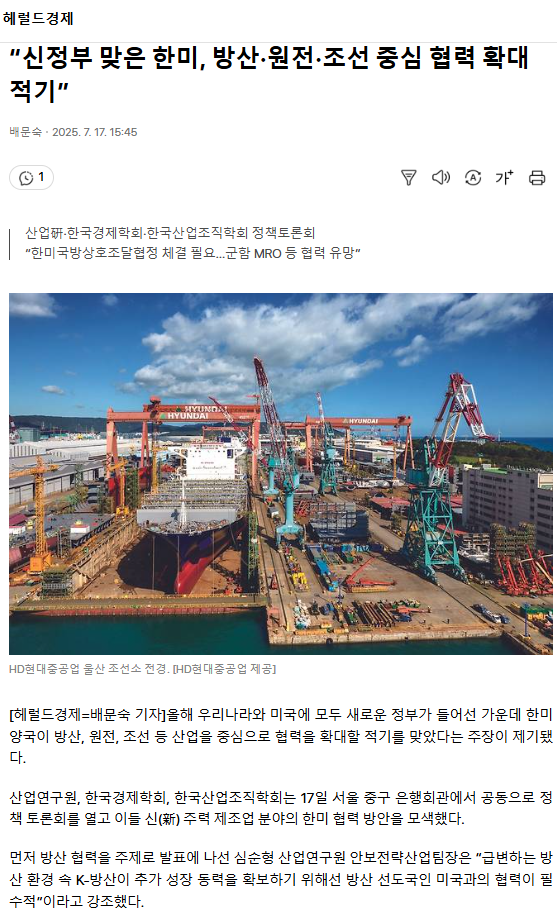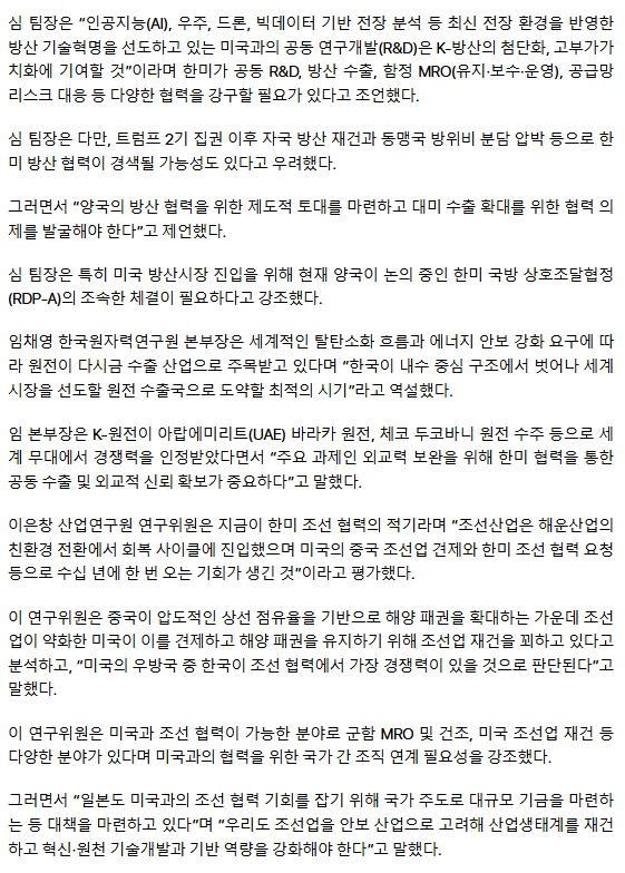 “신정부 맞은 한미, 방산·원전·조선 중심 협력 확대 적기”