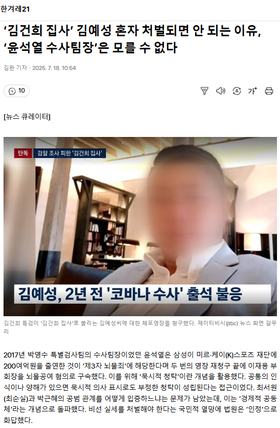 ‘김건희 집사’ 김예성 혼자 처벌되면 안 되는 이유, ‘윤석열 수사팀장’은 모를 수 없다