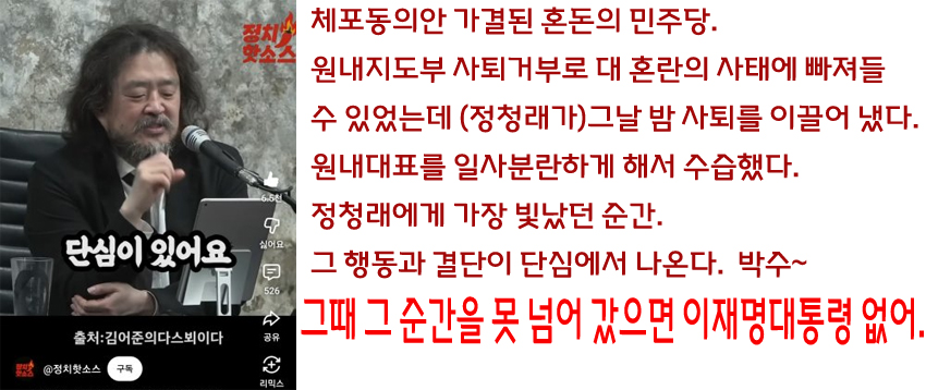 이러니 지금 정청래 체재로 지방선거가 불안하다고 하는 거다.