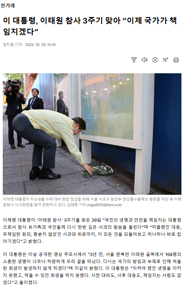 이 대통령, 이태원 참사 3주기 맞아 “이제 국가가 책임지겠다”