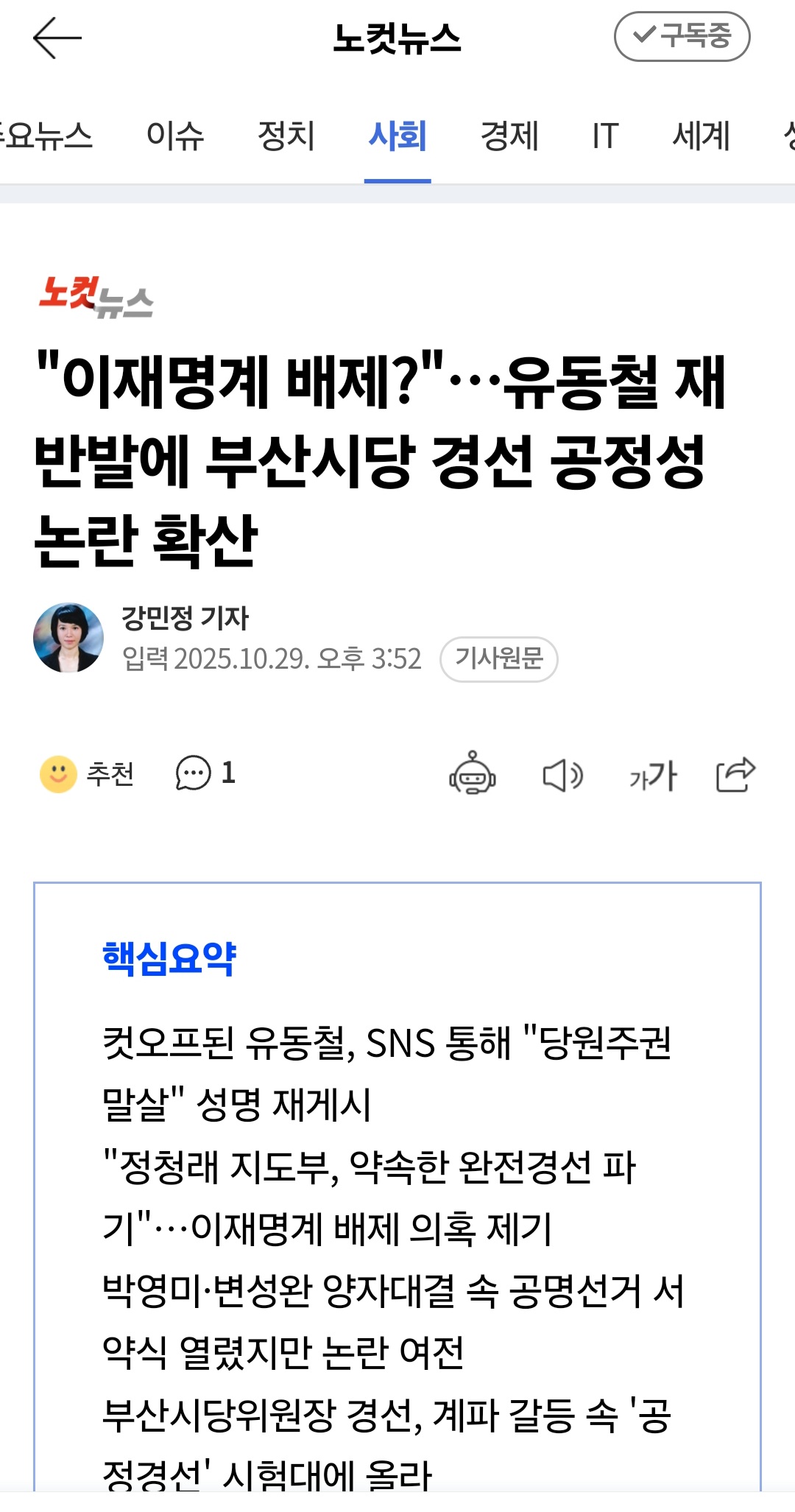 내년지방선거에 컷오프 없는 완전경선을 부르짓던 정청래당대표..