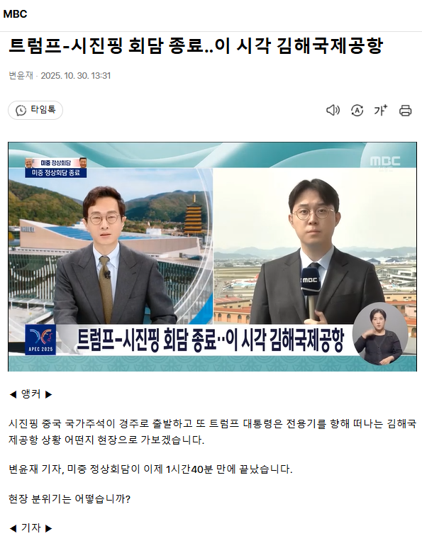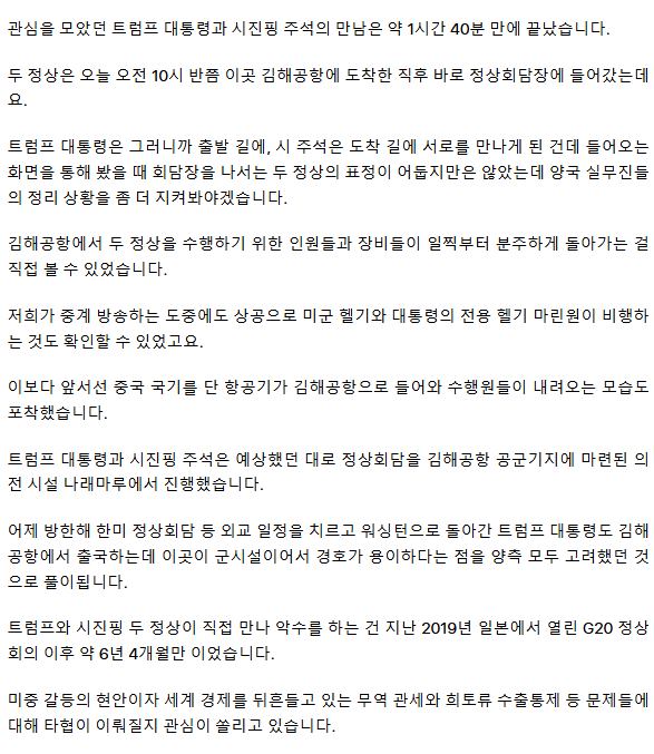 트럼프-시진핑 회담 종료‥ 이 시각 김해국제공항 ㅡ 희토류 수출 통제 유예