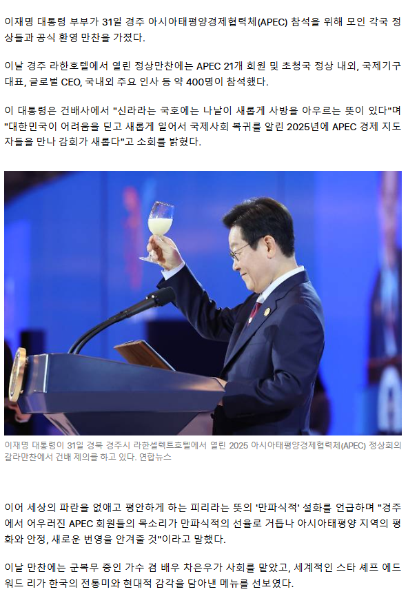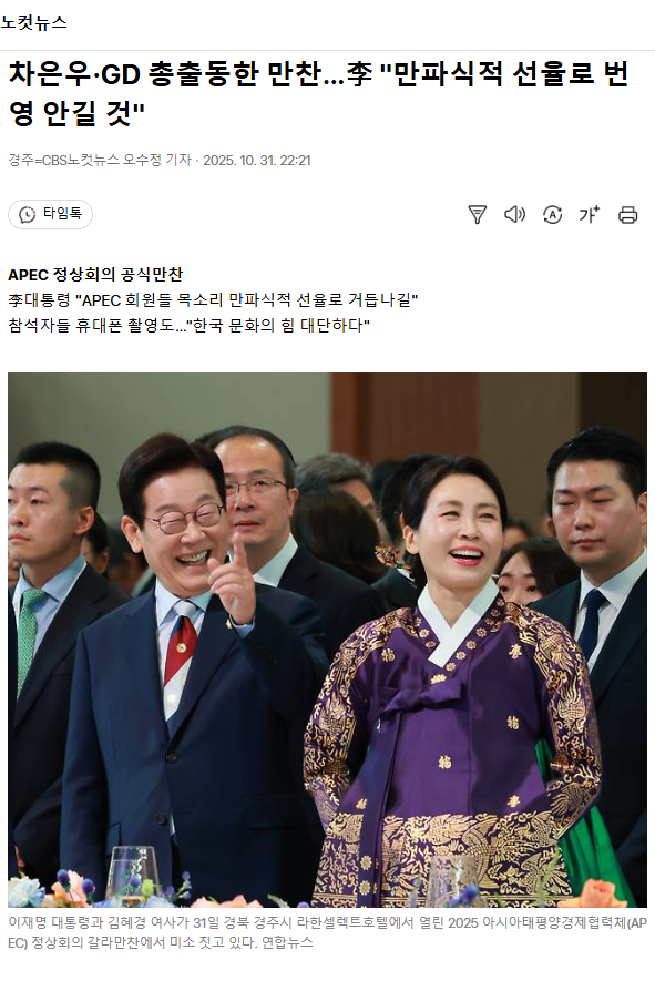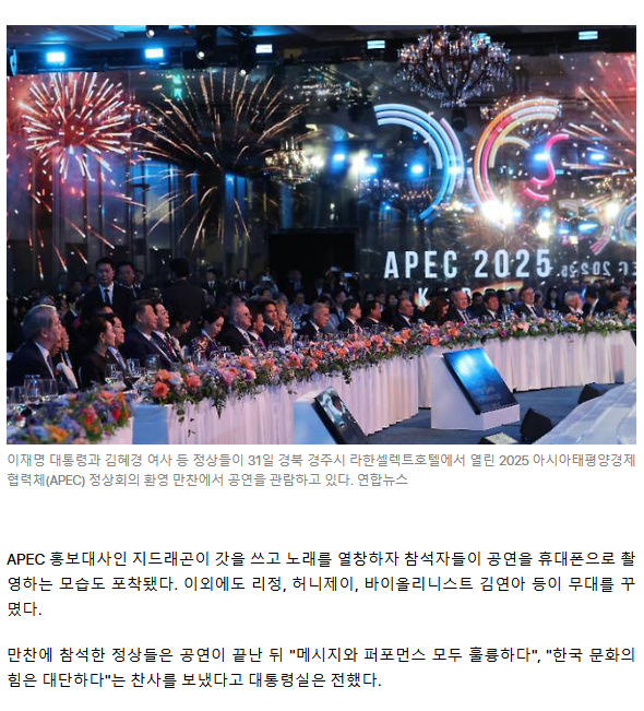 차은우·GD 총출동한 만찬… 李 "만파식적 선율로 번영 안길 것"