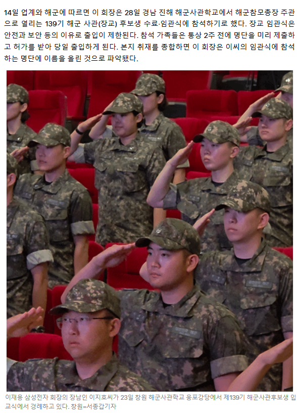 [단독] 이재용 회장, 장남 이지호씨 해군 장교 임관식 간다