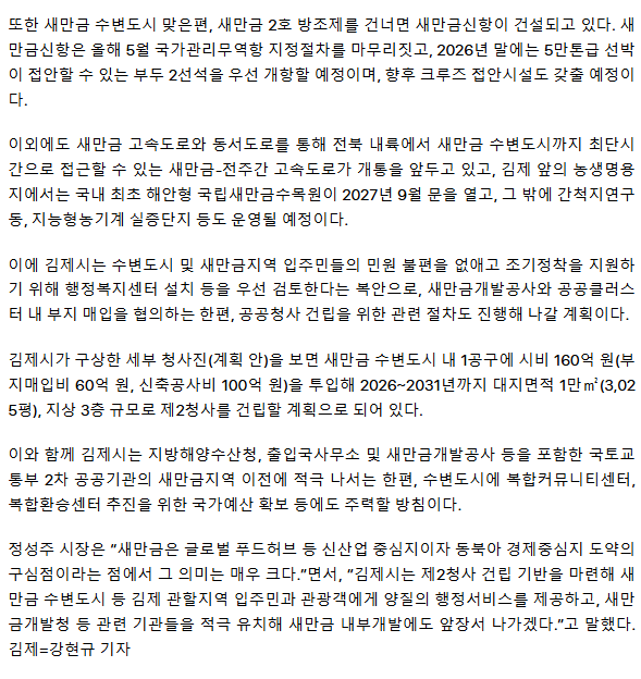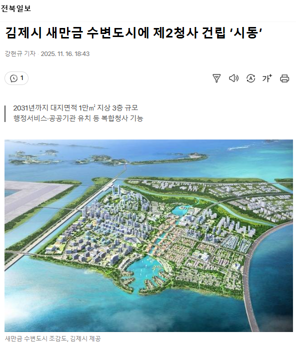 김제시 새만금 수변도시에 제2청사 건립 ‘시동’