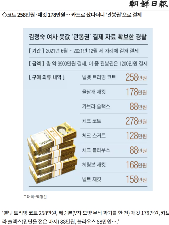 재직기간동안 옷값으로 수억원을 사용하고 일부를 관봉권을 사용했다니