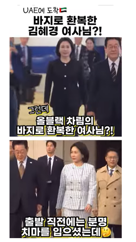 UAE에 도착한 김혜경 여사님 바지로 환복한 이유는?
