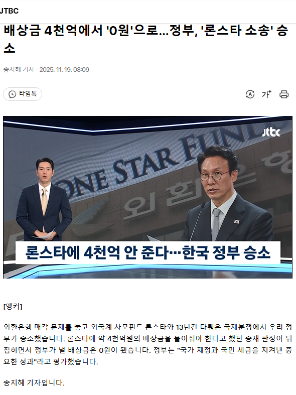배상금 4천억에서 '0원'으로… 정부, '론스타 소송' 승소