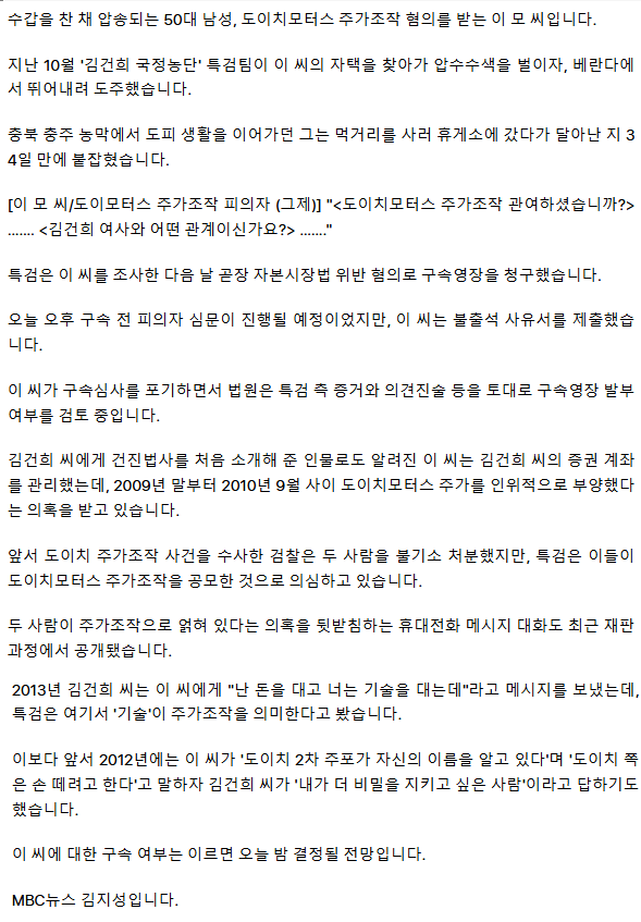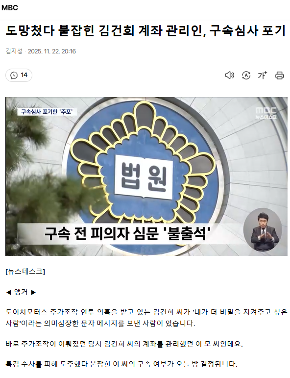 도망쳤다 붙잡힌 김건희 계좌 관리인, 구속심사 포기 ㅡ 새강자 이준수