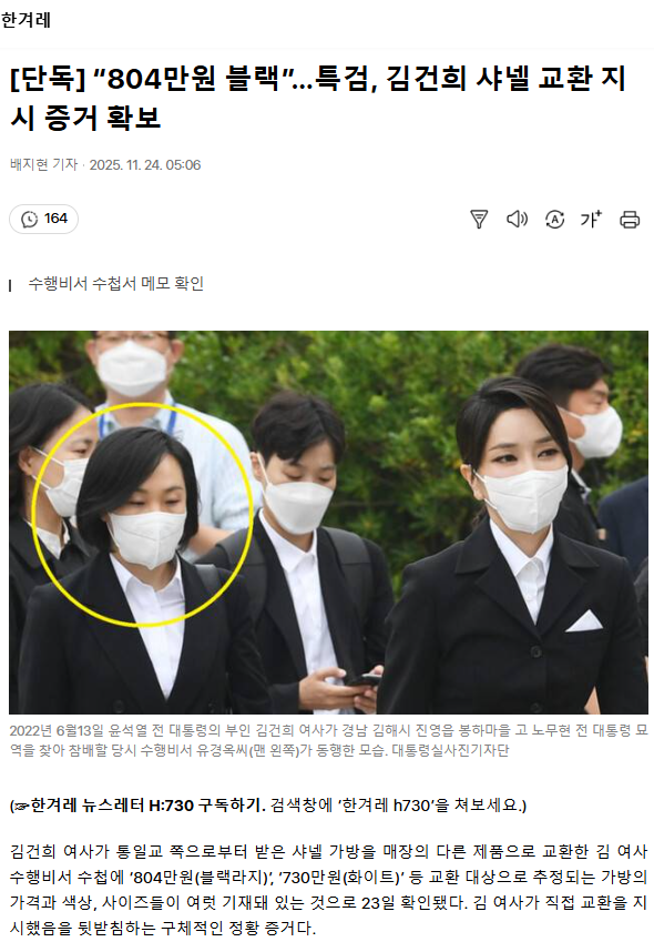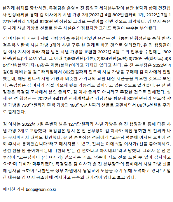[단독] “804만원 블랙”… 특검, 김건희 샤넬 교환 지시 증거 확보
