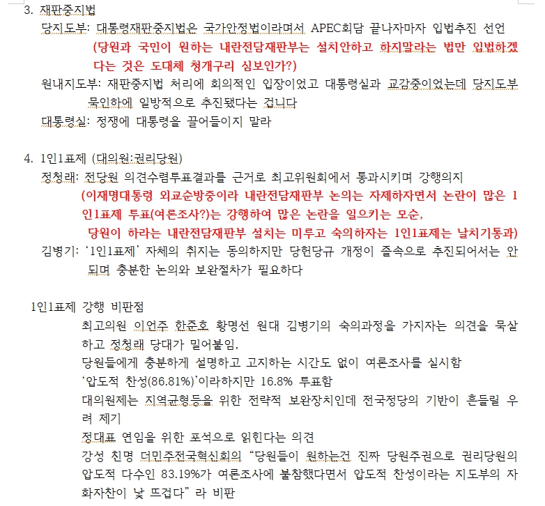 1인1표 반대가 목적이 아닙니다 중요한것은 핵심이 빠졌다는 것이고 당헌당규개정에 숨어있는 세부내용의 독소조항에 문제가 있다고 당원들이 반발을 하자 찬반투표가 아닌 의견수렴 여론조사라고 말 바꾸고 1달짜리 단기 권리당원에게 투표권을 부여하고 밀어붙여서 겨우 16.8%투표율을 압도적인 찬성으로 통과했다고 하는것에 더욱 분노를 하는것이고요