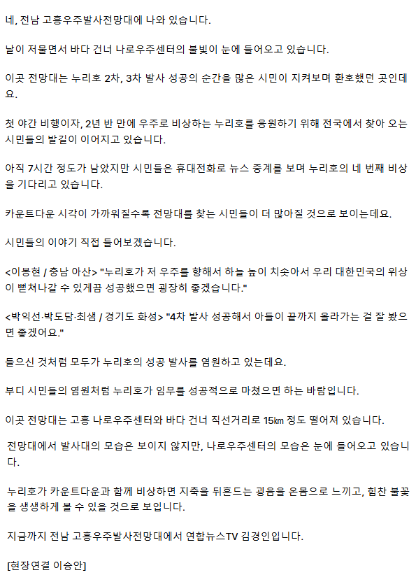 "누리호 성공 기원"… 우주발사전망대 시민 북적