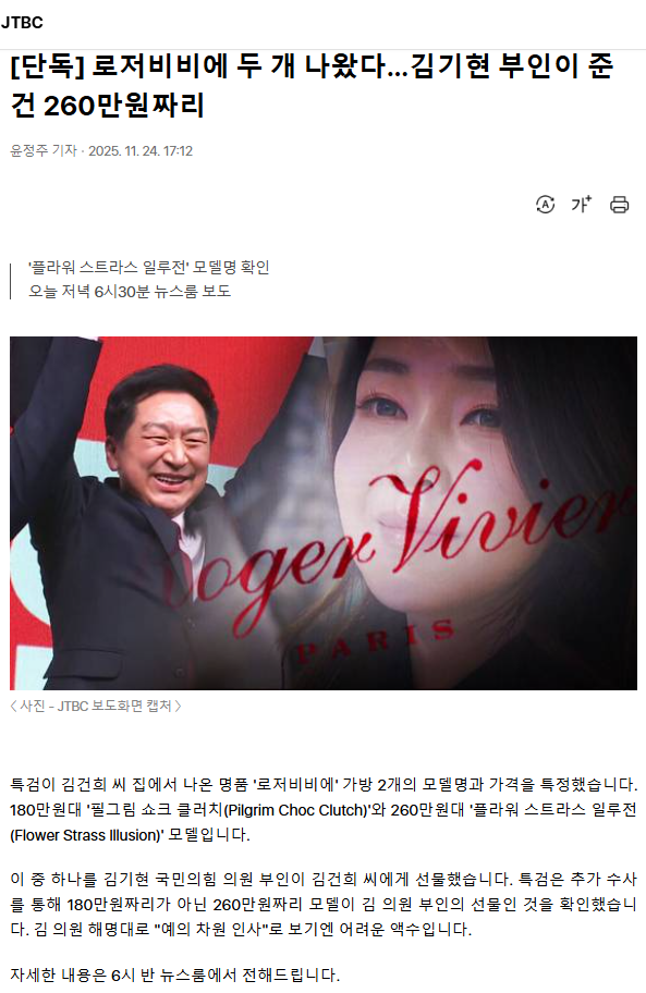[단독] 로저비비에 두 개 나왔다… 김기현 부인이 준 건 260만원 짜리