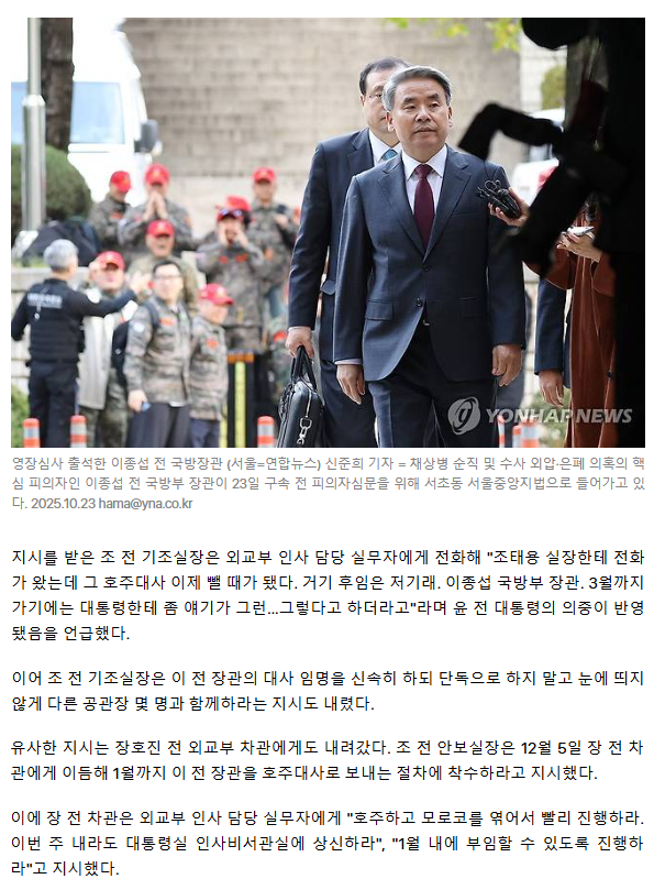 尹, 이종섭 수사 요구 거세지자 "이제 호주로 내보내자"