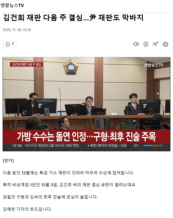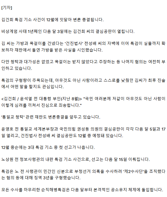 김건희 재판 다음 주 결심… 尹 재판도 막바지
