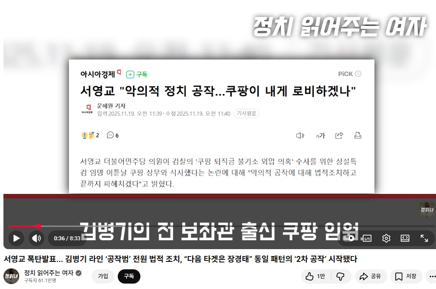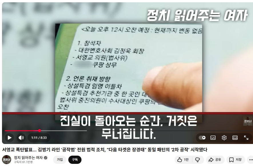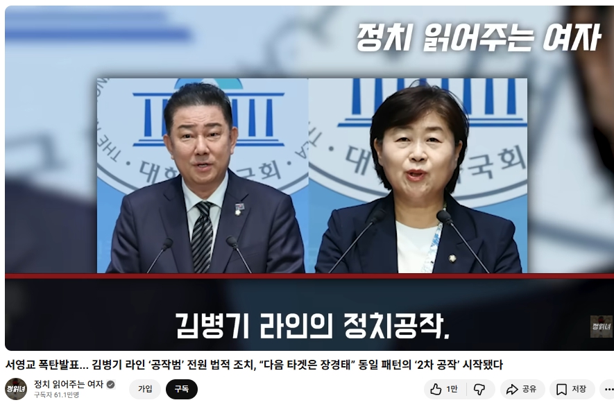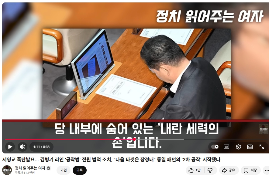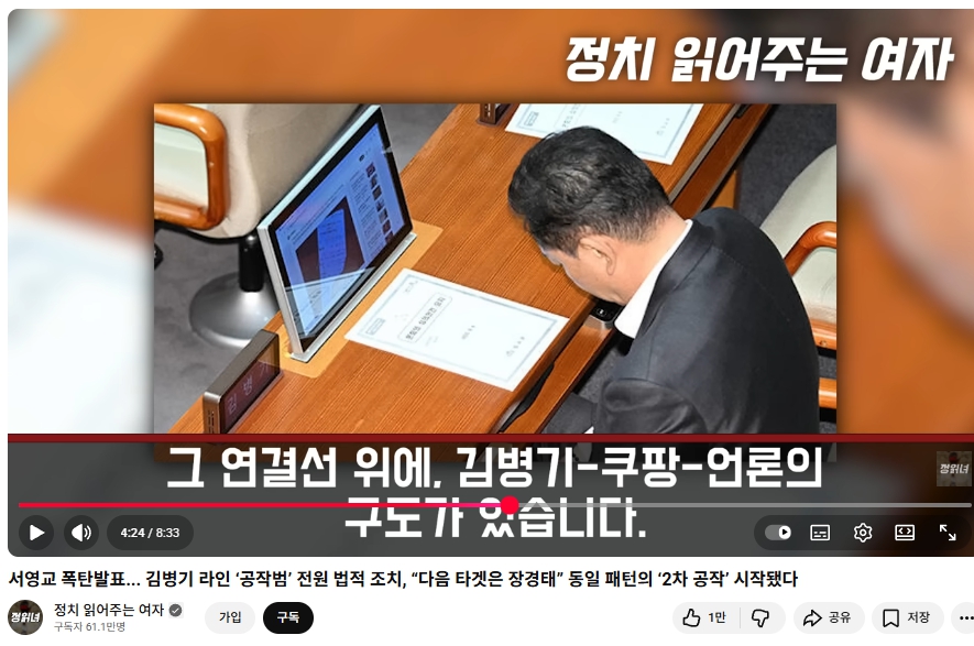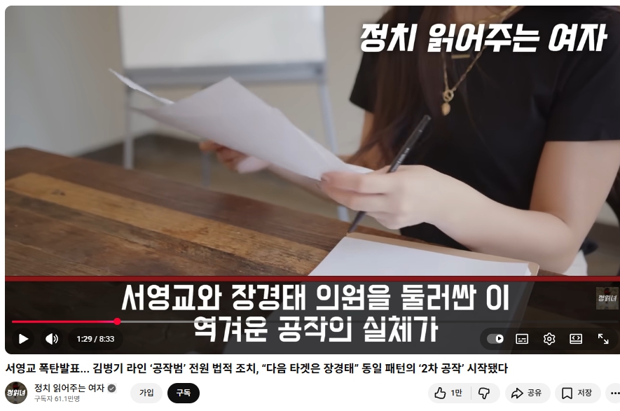 구독자가 60만이나 되는 정치를 읽어주는 여자 유튭 방송에서 말하는 내용을 보면