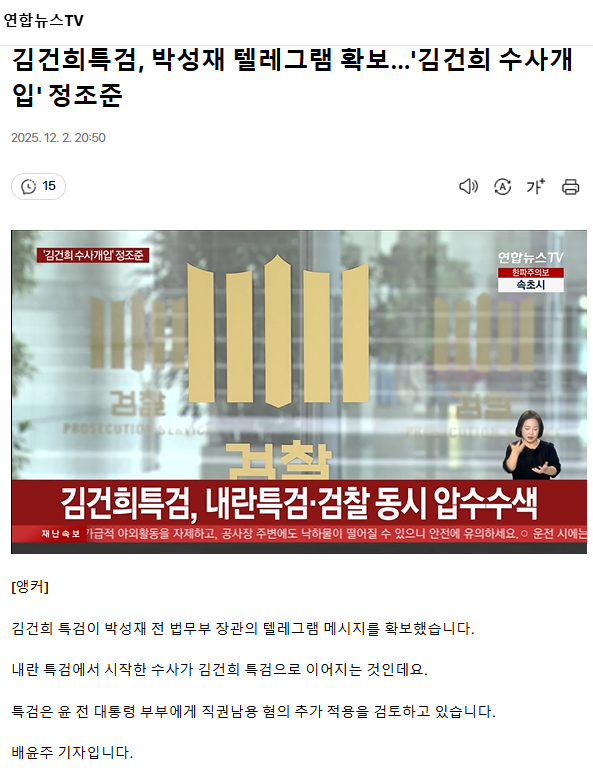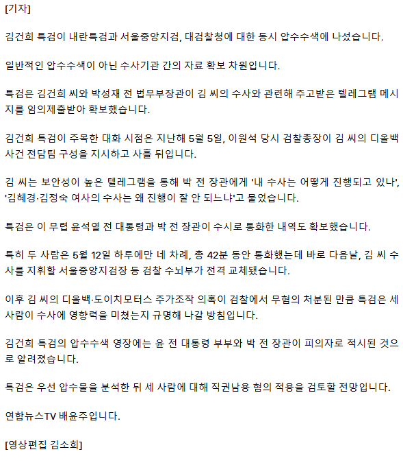 김건희특검, 박성재 텔레그램 확보… '김건희 수사개입' 정조준 ㅡ 박성재를 구속하라