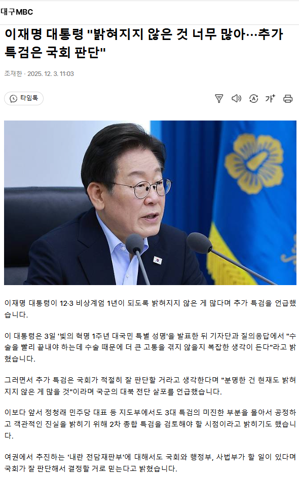 이재명 대통령 "밝혀지지 않은 것 너무 많아··· 추가 특검은 국회 판단"