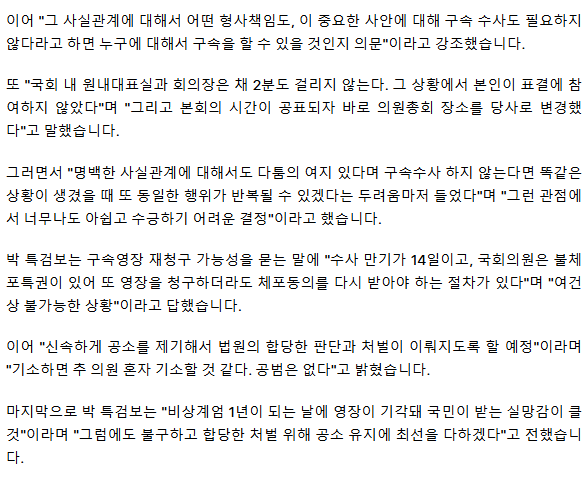 내란특검, 추경호 기각에 "이게 구속 아니면 누굴 구속하나"