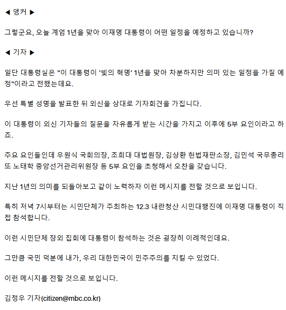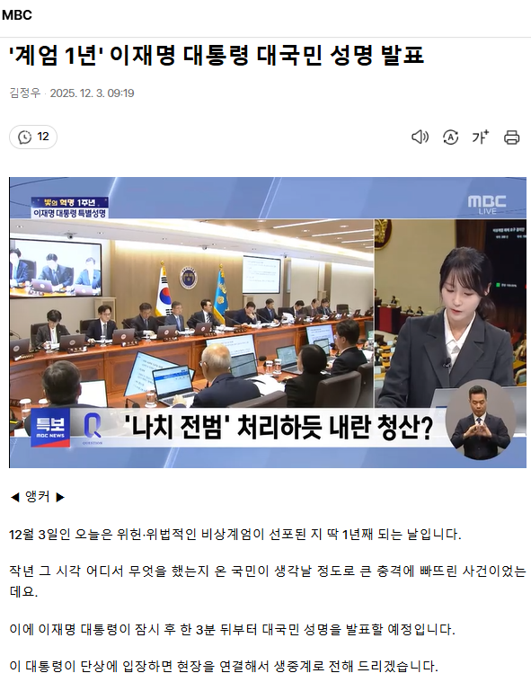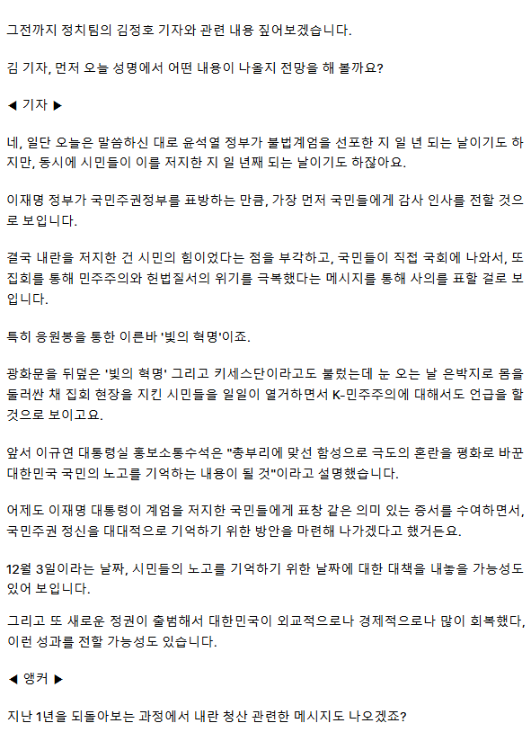 '계엄 1년' 이재명 대통령 대국민 성명 발표 ㅡ 국민들 노벨평화상 자격, 국민주권의날 법정공휴일