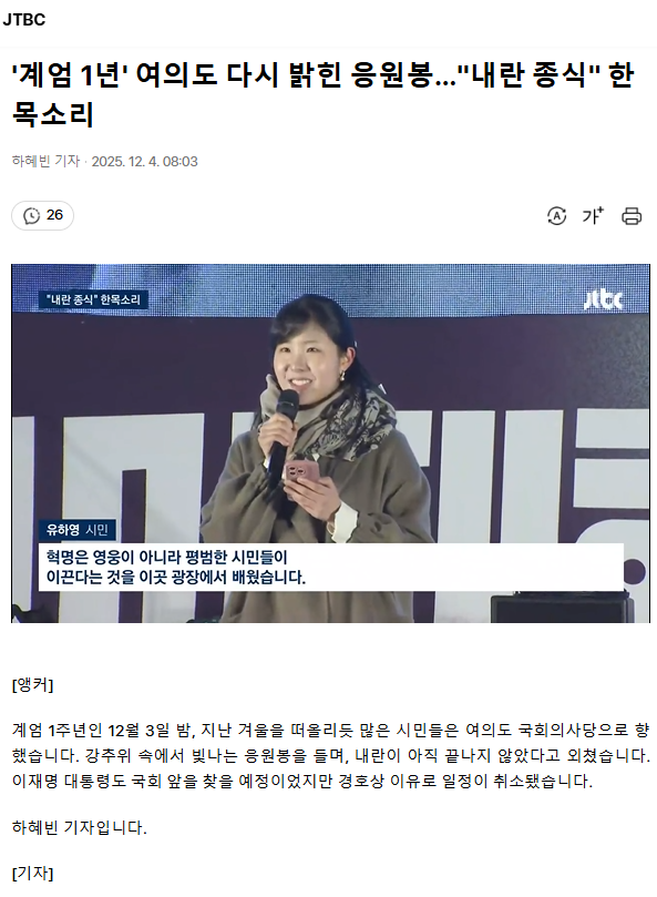 '계엄 1년' 여의도 다시 밝힌 응원봉… "내란 종식" 한 목소리