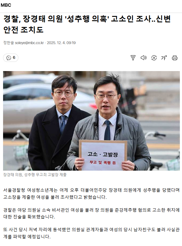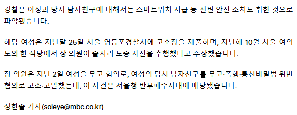 경찰, 장경태 의원 '성추행 의혹' 고소인 조사‥ 신변 안전 조치도