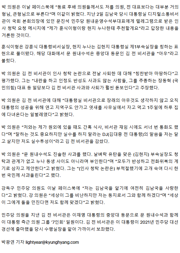 박지원 “김남국 사퇴, 칭찬받아 마땅··· ‘형·누나’는 동료 부르는 민주당 언어 풍토”