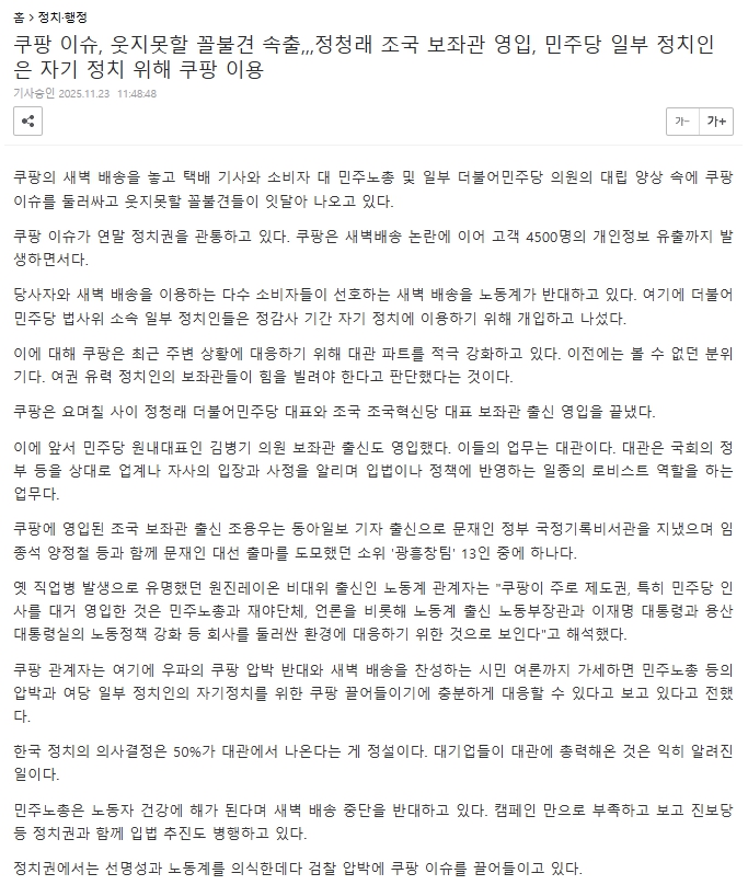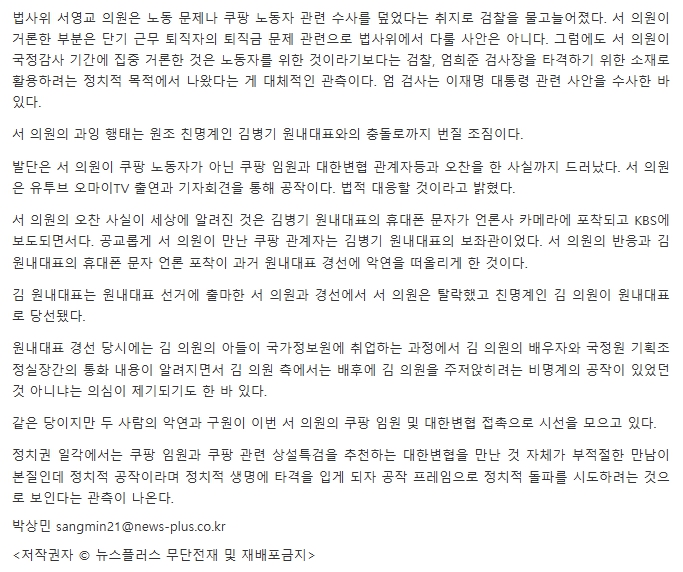 서영교 쿠팡 공작설 관련하여 일부 의견