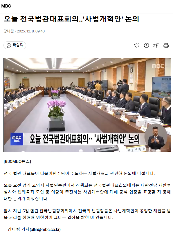 오늘 전국법관대표회의‥ '사법개혁안' 논의 ㅡ 126명 중 84명 참석