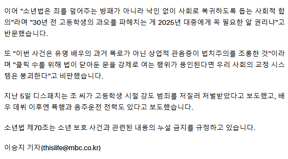 '조진웅 소년범 전력' 첫 보도 디스패치, 소년법 위반으로 고발 당해 ㅡ김경호 "소년법 제70조 위반 김소정, 구민지