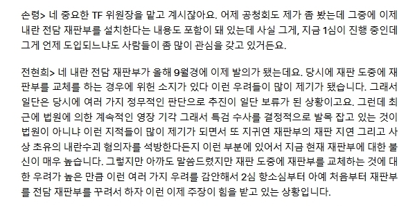 내란전담재판부도 9월에 발의되고 그때부터 여론을 수렴하고 당론을 하나로