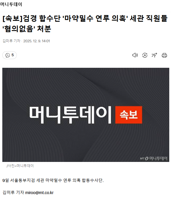 [속보] 검경 합수단 '마약밀수 연루 의혹' 세관 직원들 '혐의없음' 처분ㅡ합수단이 윤 똘마니 인증?