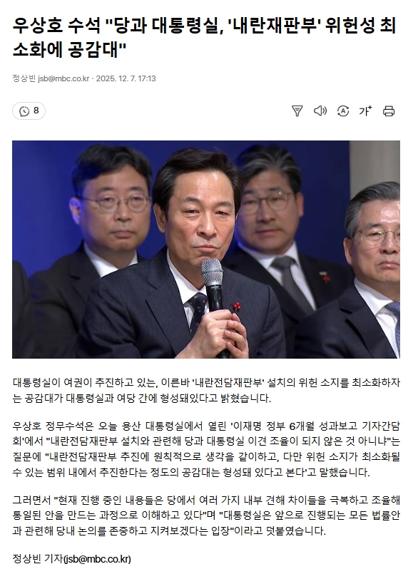 "내란전담재판부 만드는 법안은 7월경 이미 120명이 넘는 의원들의 공동 발의로 박찬대의원이 발의한 것이