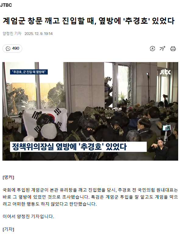 계엄군 창문 깨고 진입할 때, 옆방에 '추경호' 있었다 ㅡ 내란공범 인증하네