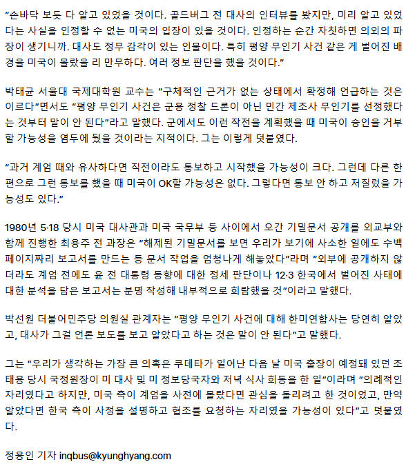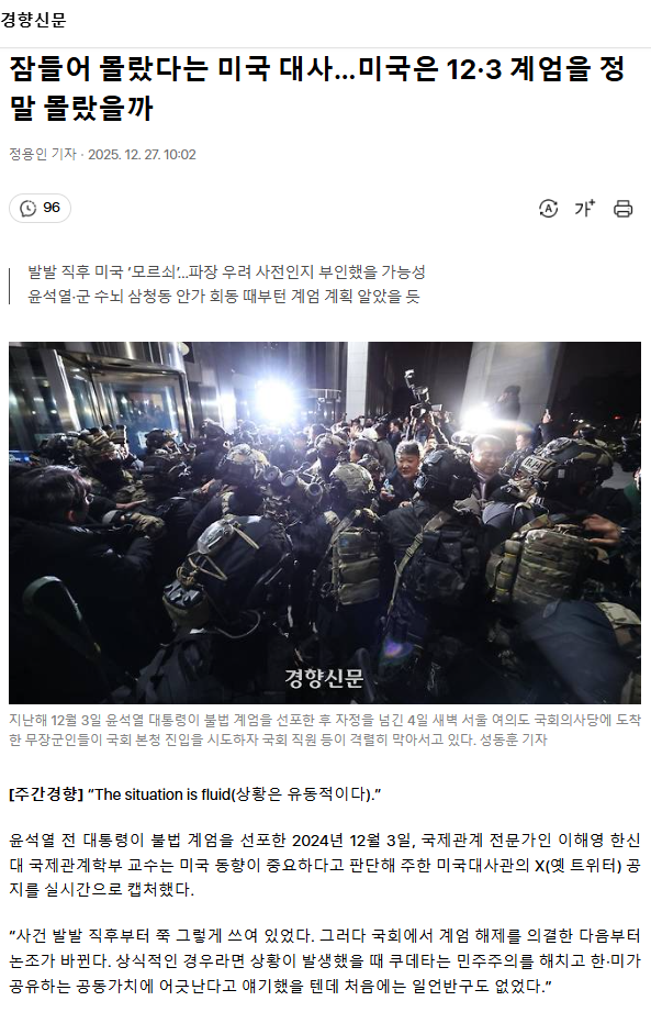 잠들어 몰랐다는 미국 대사… 미국은 12·3 계엄을 정말 몰랐을까