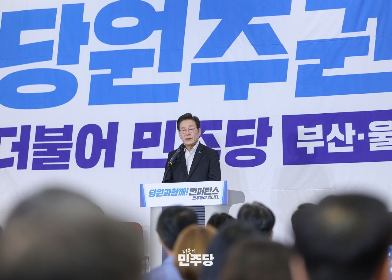 이재명 당대표가 2024.05.23.(금) 부산 벡스코에서 진행한 ‘당원주권시대’ 컨퍼런스 부산·울산·경남편에 참석하여 당원들의 의견을 듣고 있다.