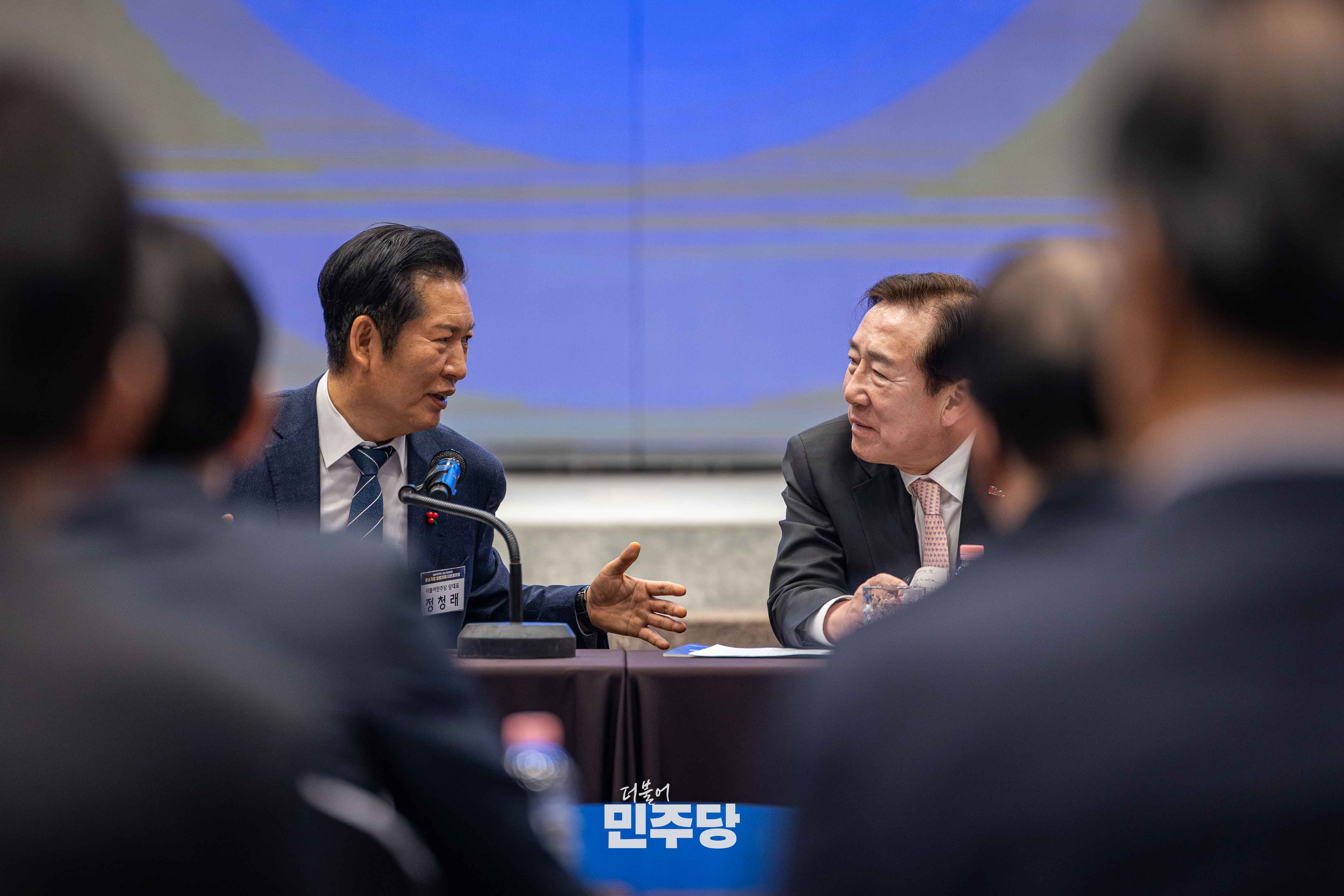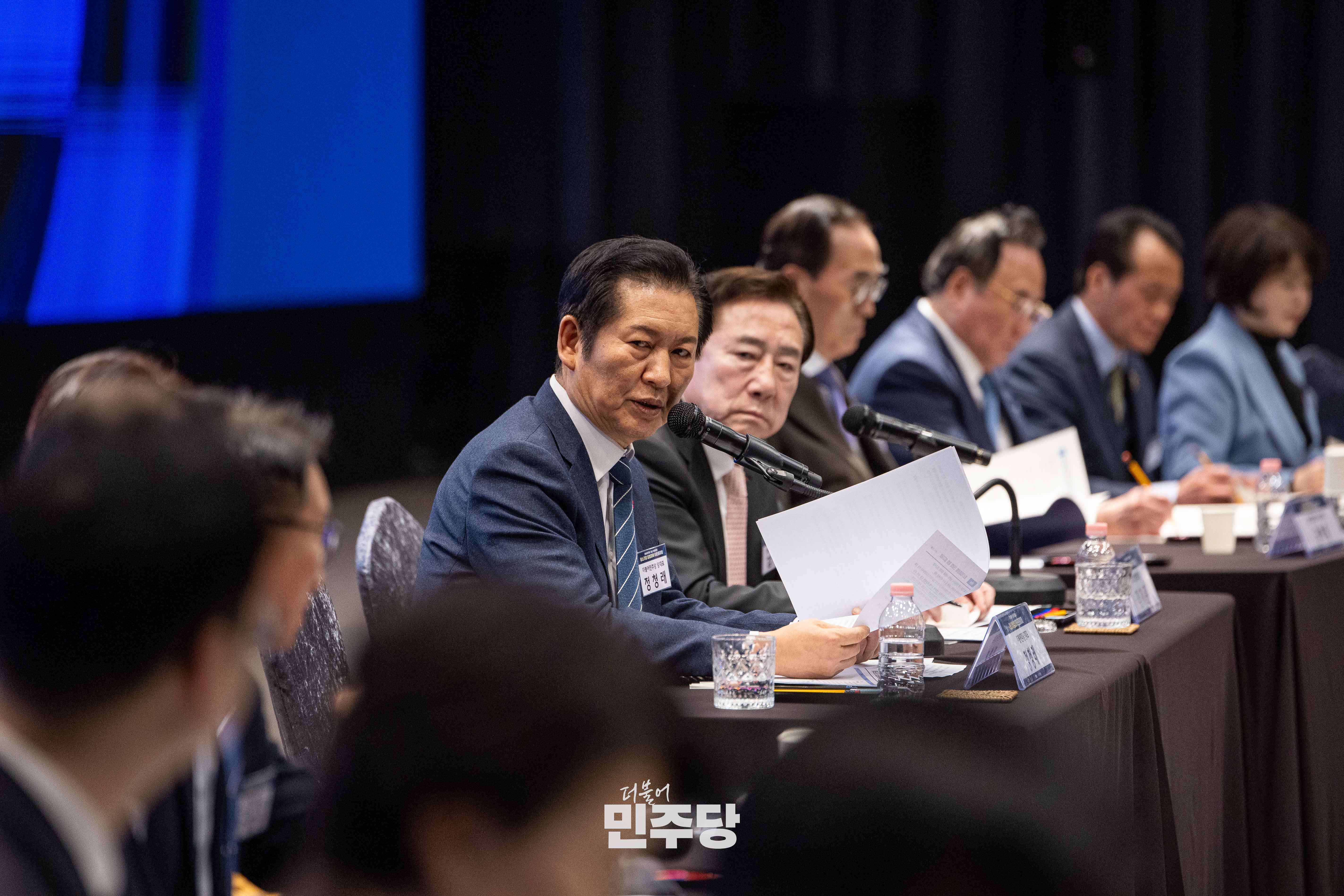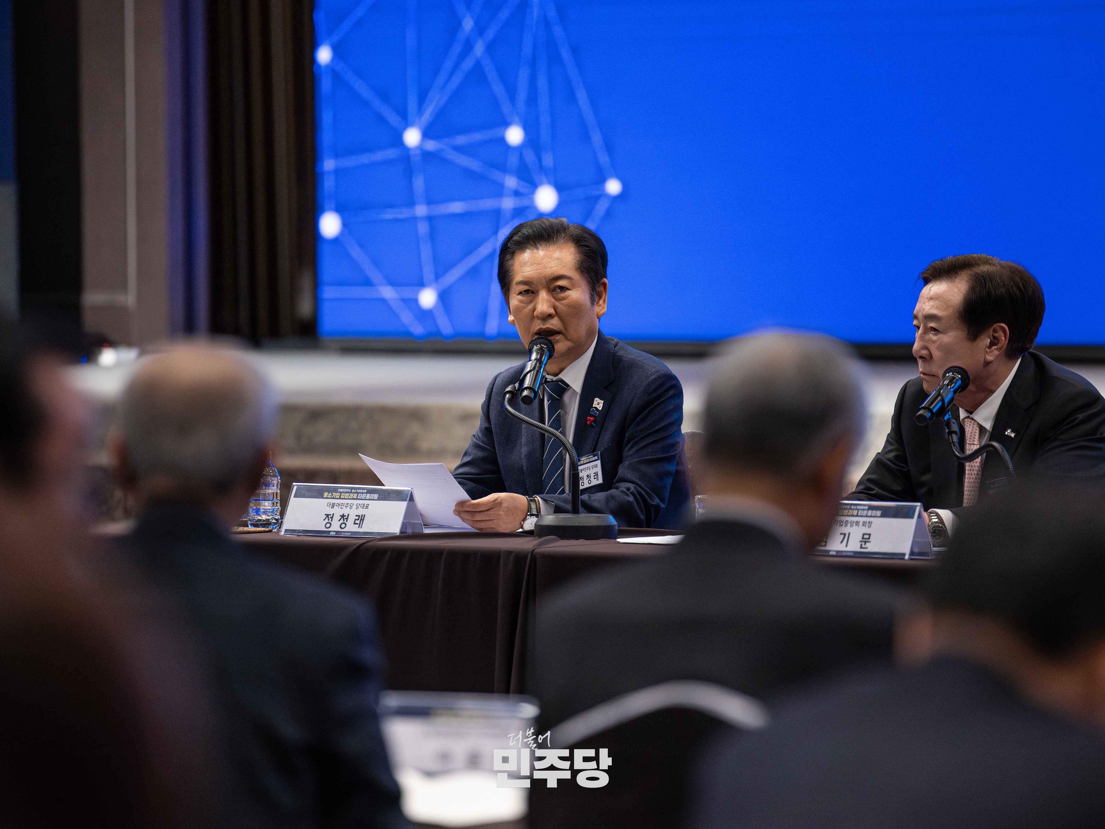 정청래 당대표가 2025.12.03.(수) 국회 의원회관 대회의실에서 열린 12.3 비상계엄 1년 특별좌담회 행동하는 K-민주주의에 참석하여 좌담회를 하고 있다.