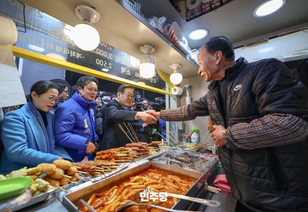 이재명 당대표가 2024.03.06.(수) 양천구 목동에 위치한 목동깨비시장에 황희 양천구(갑) 국회의원 후보와 방문하여 시장상인들과 인사를 나누고 있다.