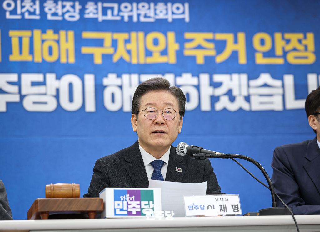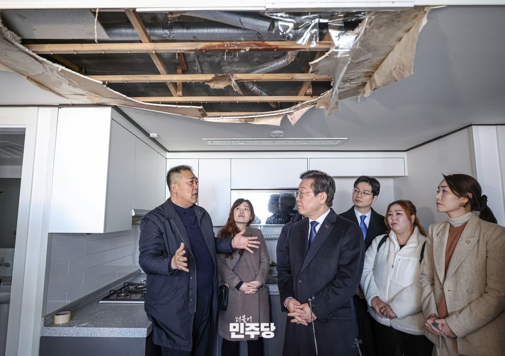 이재명 당대표가 2024.02.26.(월) 인천 미추홀구에 위치한 전세사기피해현장을 방문하여 전세사기피해자들과 현장을 방문하고 고충을 듣고 있다.