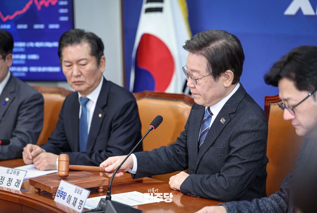 이재명 당대표가 2024.02.14.(수) 국회 본청 당대표회의실에서 열린 최고위원회의를 주재하고 있다.
