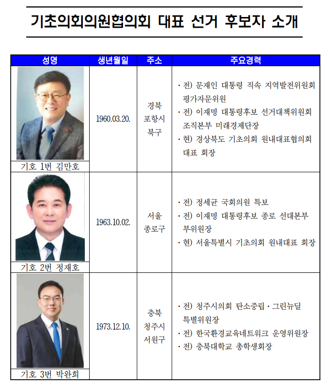 기초의회의원협의회 대표 선거 후보등록 결과